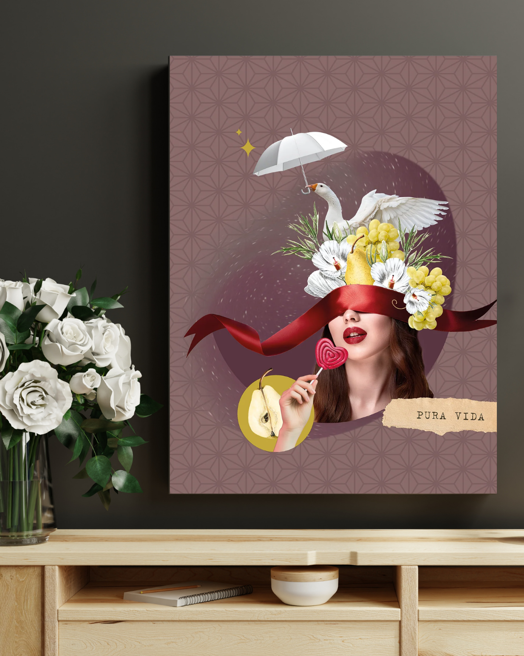 Możesz wybrać kolaż cyfrowy, który będzie wisiał nad biurkiem i przypominał Ci o spokoju w środku dnia, możesz postawić go w kuchni obok ekspresu i czytać rano przy pierwszym łyku kawy, możesz podarować go komuś, kto właśnie potrzebuje chwili oddechu. Nie trzeba znać się na sztuce ani „wierzyć w afirmacje”, wystarczy czuć, że dane zdanie jest o Tobie.