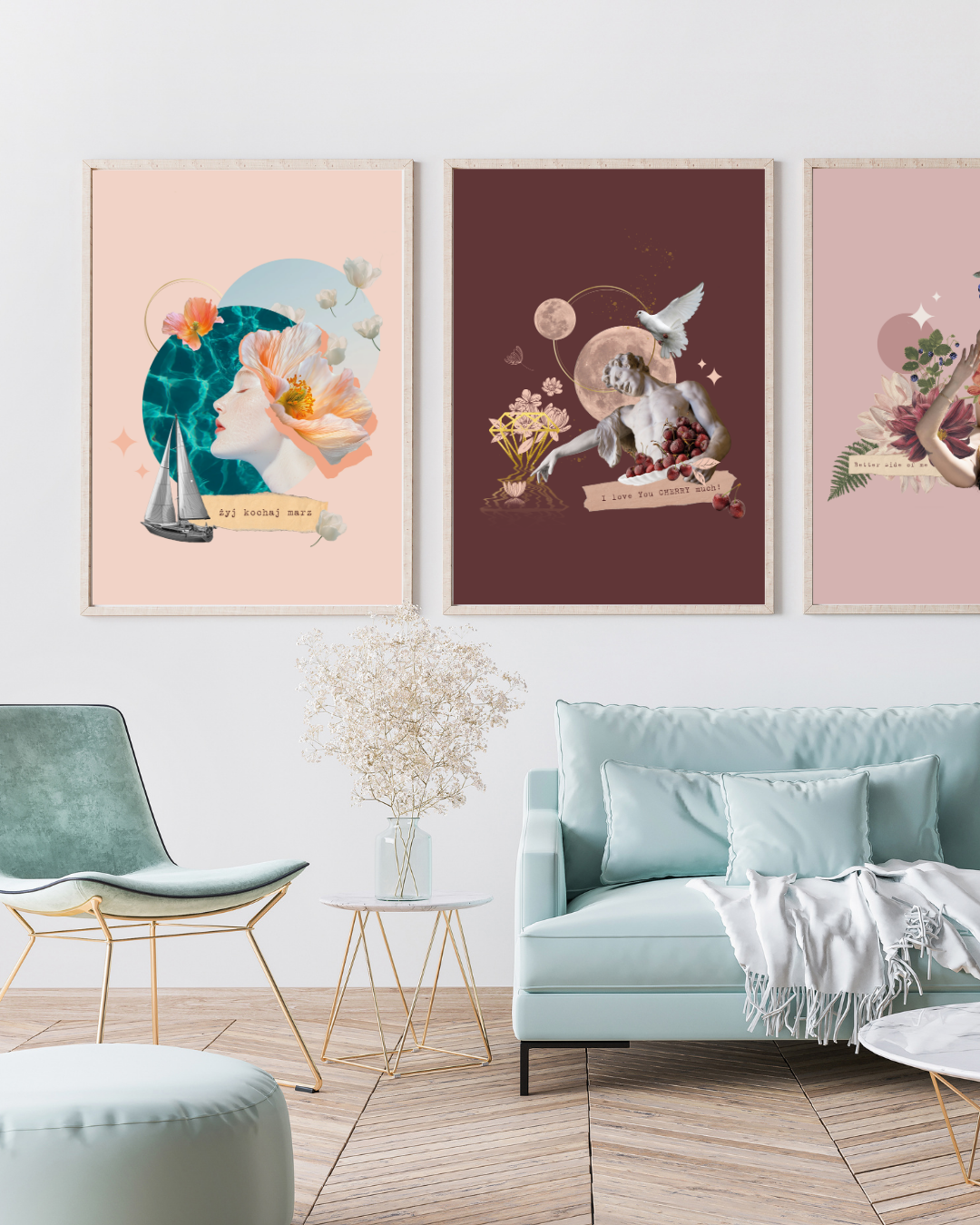 Możesz wybrać kolaż cyfrowy, który będzie wisiał nad biurkiem i przypominał Ci o spokoju w środku dnia, możesz postawić go w kuchni obok ekspresu i czytać rano przy pierwszym łyku kawy, możesz podarować go komuś, kto właśnie potrzebuje chwili oddechu. Nie trzeba znać się na sztuce ani „wierzyć w afirmacje”, wystarczy czuć, że dane zdanie jest o Tobie.