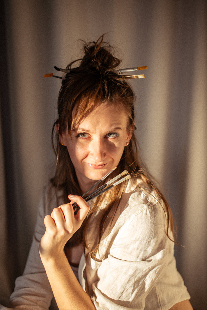 Kolaże z afirmacją w Focusach nie powstały jako produkt do sprzedaży, tylko jako coś bardzo osobistego, co przez długi czas było tylko moje. Zaczęłam je tworzyć w momencie, kiedy potrzebowałam zbudować dla siebie bezpieczną przestrzeń i uporządkować chaos w głowie, a obraz i słowo stały się dla mnie sposobem na złapanie równowagi. Wracałam wtedy do kolaży, które robiłam jako nastolatka, budowałam własne światy z kolorów, faktur i symboli, a do nich dopisywałam zdania, których sama w tamtym czasie najbardziej potrzebowałam.